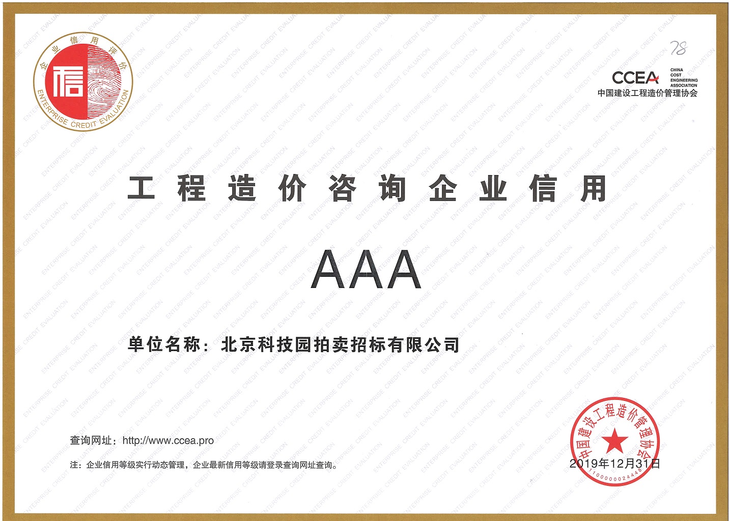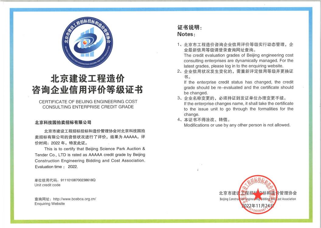 工程造價(jià)咨詢企業(yè)AAA信用證書(shū)