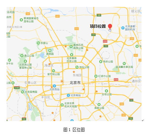 北京新國展二、三期項目位于北京市區的東北部,順義新城后沙峪組團東南部,距市區、城市副中心均約20公里(見圖1)。