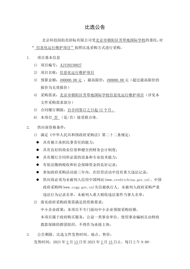 比選公告 運(yùn)維