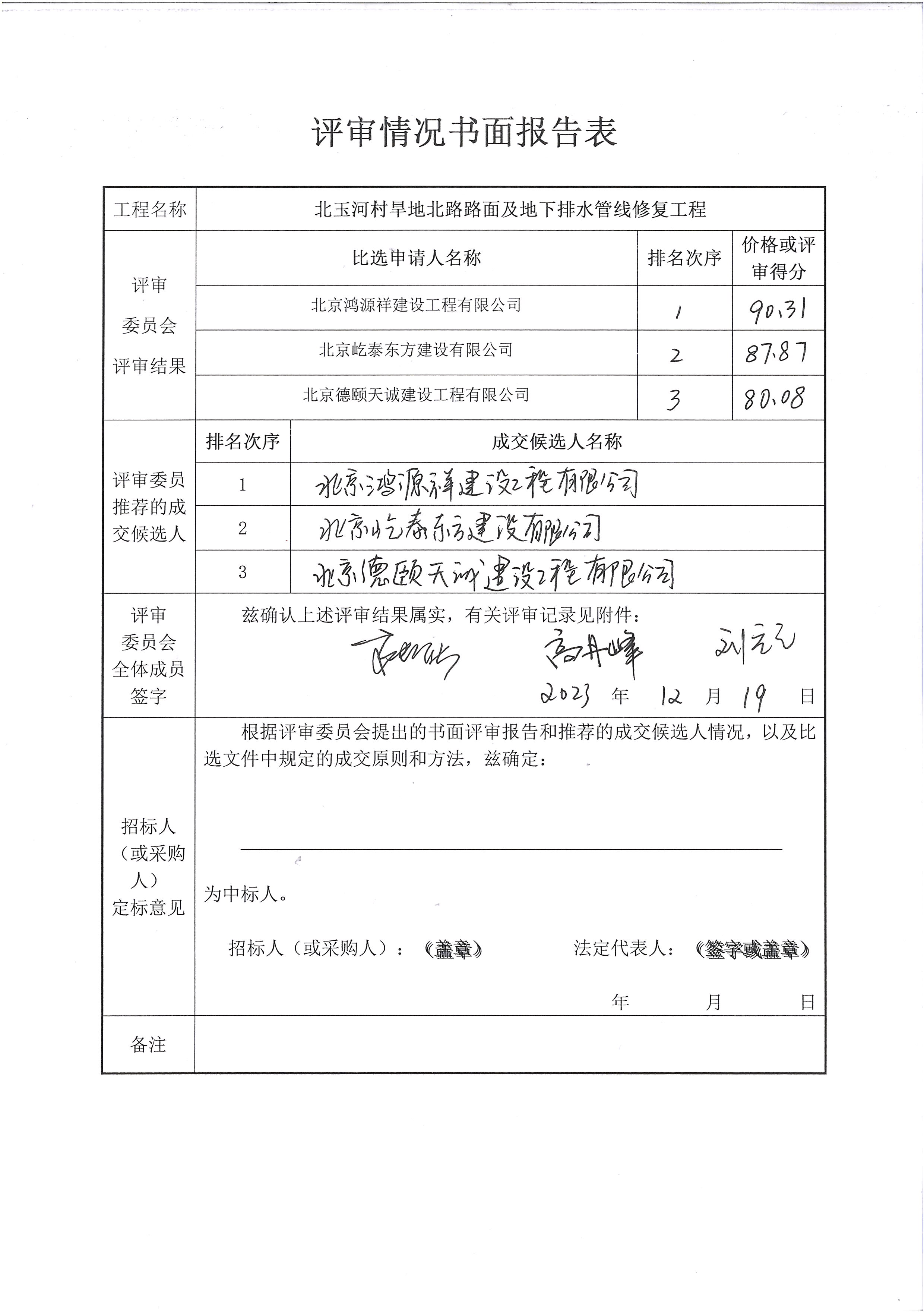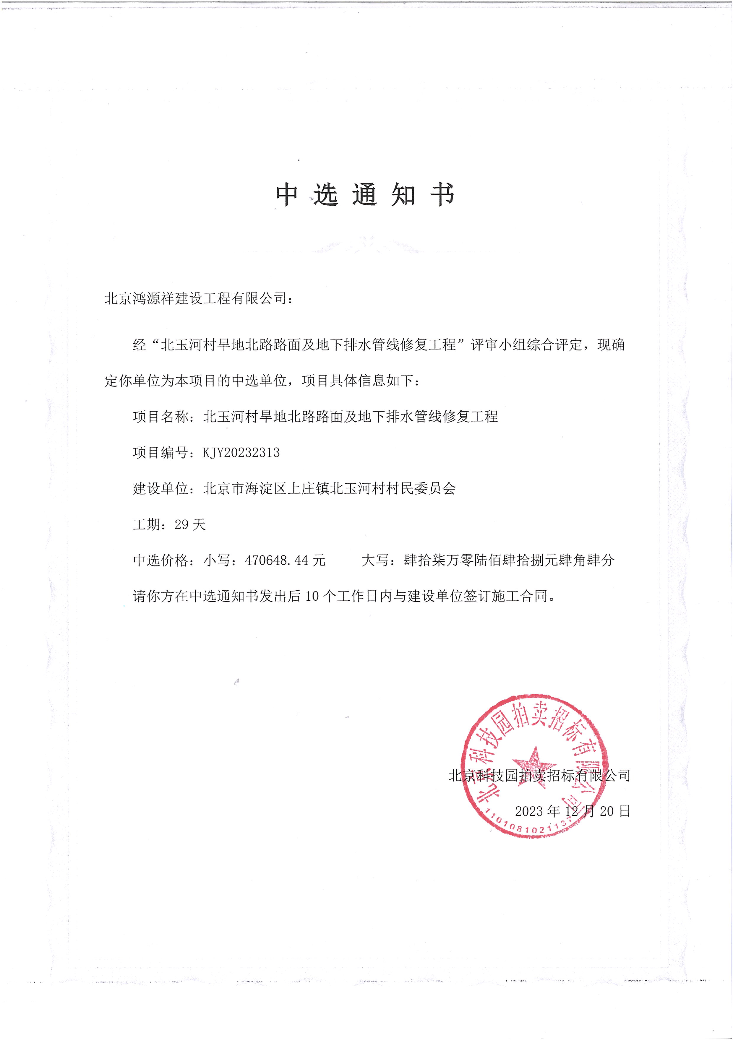 項目名稱:北玉河村旱地北路路面及地下排水管線修復工程