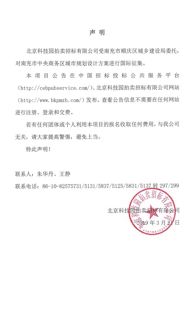 關于南充市中央商務區城市規劃設計方案國際征集的聲明