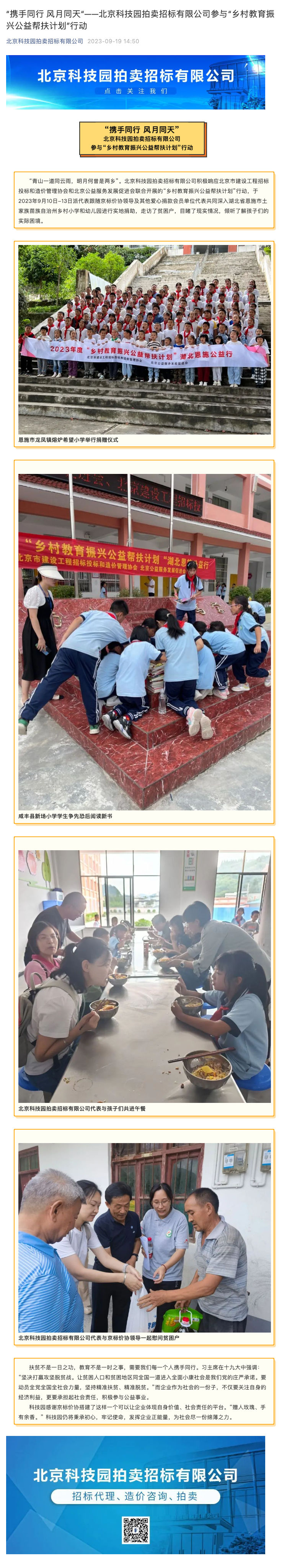 “攜手同行 風月同天“——北京科技園拍賣招標有限公司參與 “鄉村教育振興公益幫扶計劃”行動